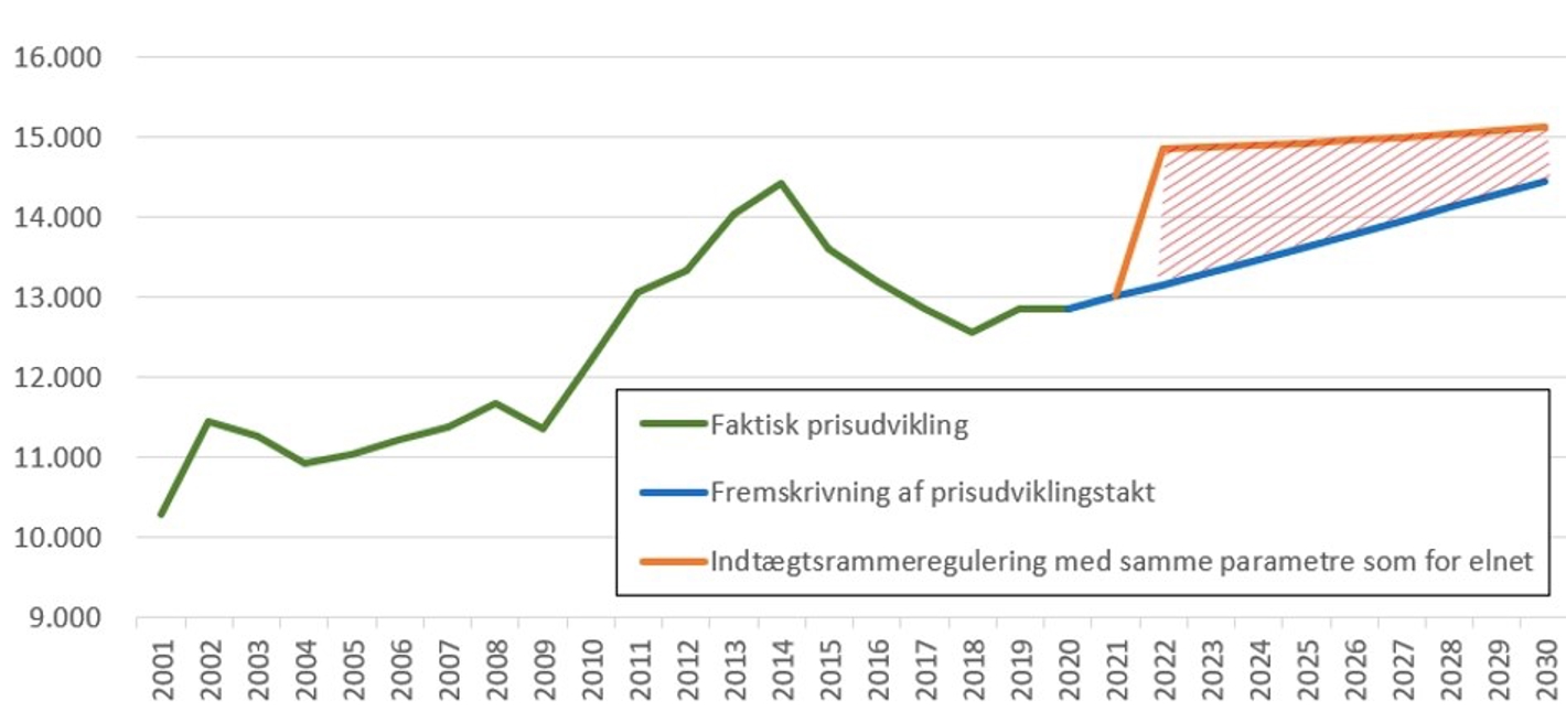 Denne pointe kan illustreres ved at se på de virkninger for forbrugerne, som fremgik af tilsynets analyse. Tilsynets budskab var her, at fjernvarmeforbrugerne frem til 2030 kan spare op til 7,5 milliarder kroner, hvis der indføres en indtægtsrammeregulering som i elnetsektoren.