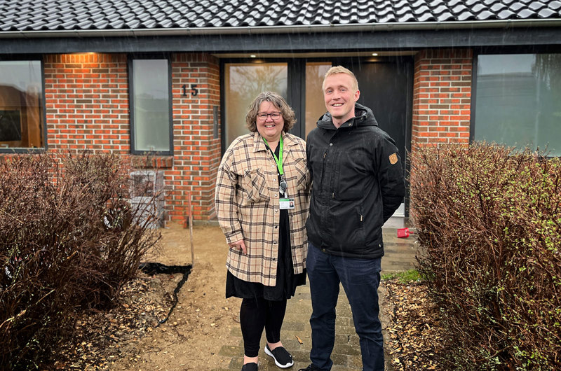 Fjernvarmechef Elsebeth Arendt fra Kredsløb bød Søren Rahr velkommen som den første fjernvarmekunde i Skovby. Foto: Kredsløb.