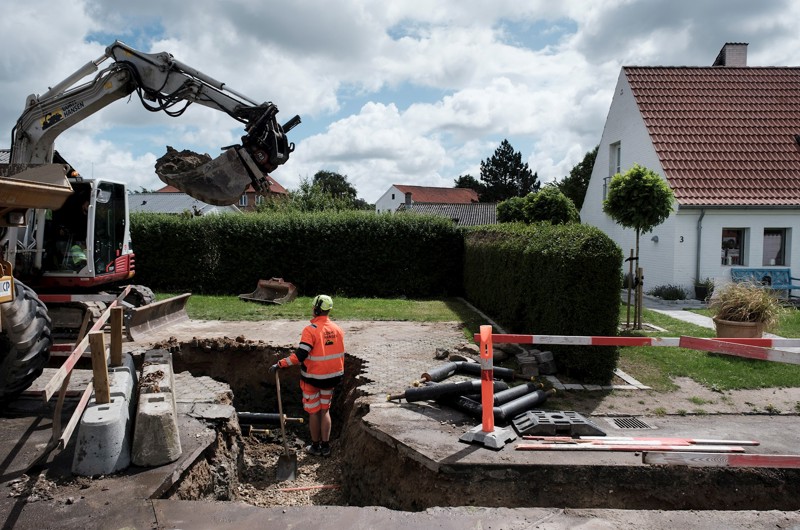 Sådan her kommer en del veje nok til at se ud i Næstved, når der skal konverteres op mod 4.900 forbrugere i de kommende år. Foto: Næstved Fjernvarme.