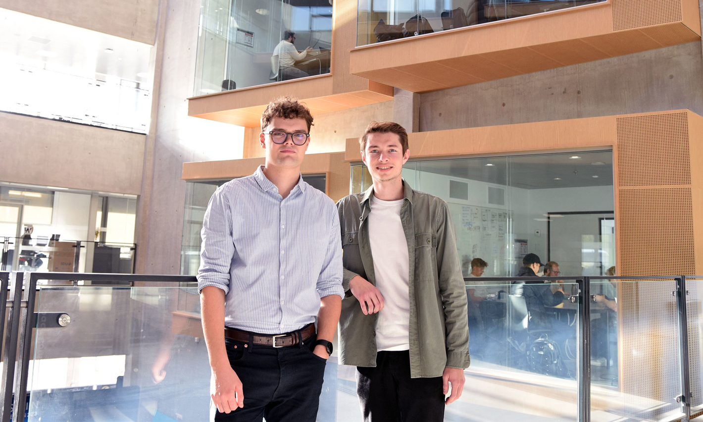 Theis Bank og Frederik Wagner Madsen læser til civilingeniør i energisystemer på SDU, men har gode erfaringer fra deres arbejde med Fjernvarme Fyn, hvor de skrev deres bachelorprojekt. Foto: Niklas Jørgensen.