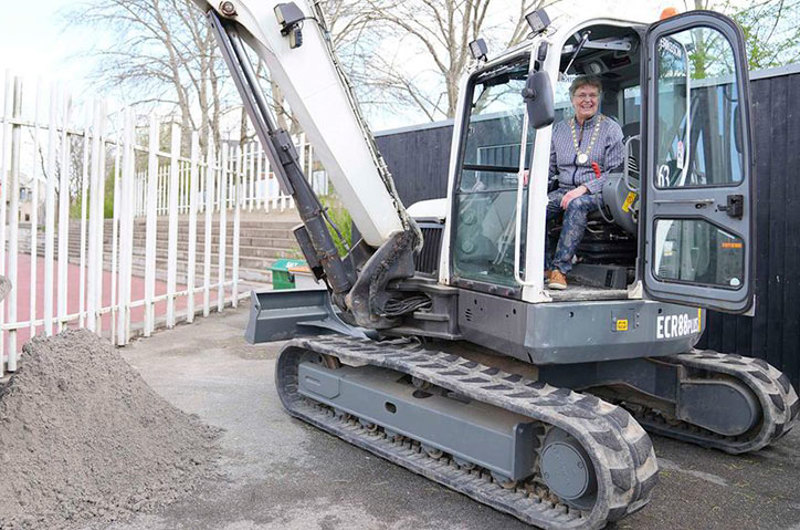 Borgmester Trine Græse tog hul på fjernvarmeudbygningen i Gladsaxe Kommune. En udbygninger der fortsætter frem til 2028. Foto: Vestforbrænding.
