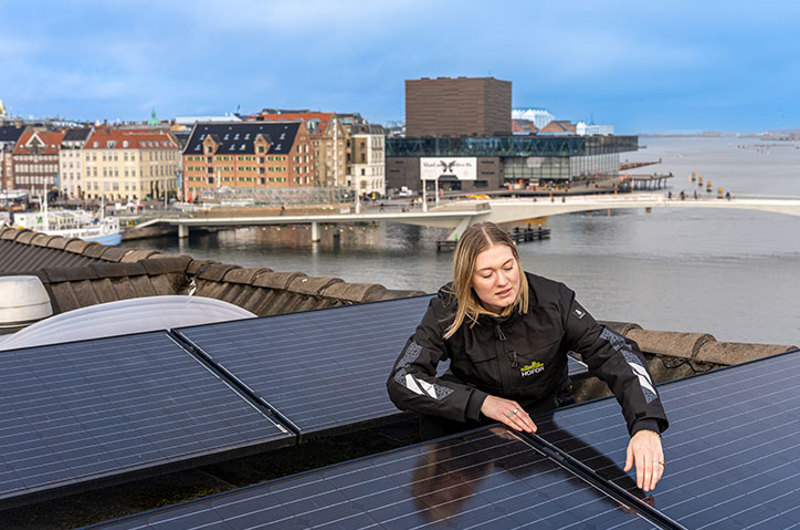 Ifølge DTU udgør energiforbruget i bygninger næsten 40 procent af Danmarks samlede energiforbrug. Sætter man solceller op på tagene, kan bygningerne derfor spille en vigtig rolle i målet om at få mere grøn energi. Foto: Hofor.