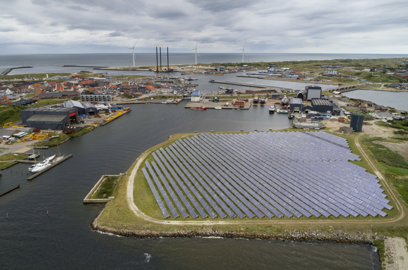 Både vindmøller og solceller i Hvide Sande er eksempler på energilandskaber, der er til at få øje på i bybilledet. Men den lokale forankring og betydning for byen er det, vi skal sigte imod alle steder, siger Rikke Juul Gram. Foto: Jesper Voldgaard.