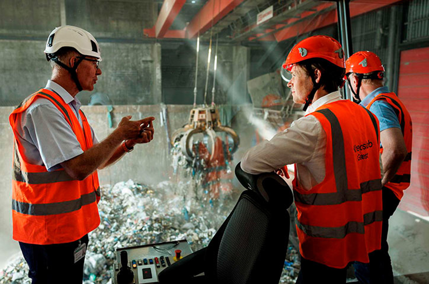 Dernæst gik turen videre til Kredsløb affaldsenergianlæg. Her blev EP-kandidaten taget godt imod af administrerende direktør hos Kredsløb, Bjarne Munk Jensen. Her deltog også fjernvarmechef hos Kredsløb, Elsebeth Arendt, og Dansk Fjernvarmes internationale chef Birger Lauersen.