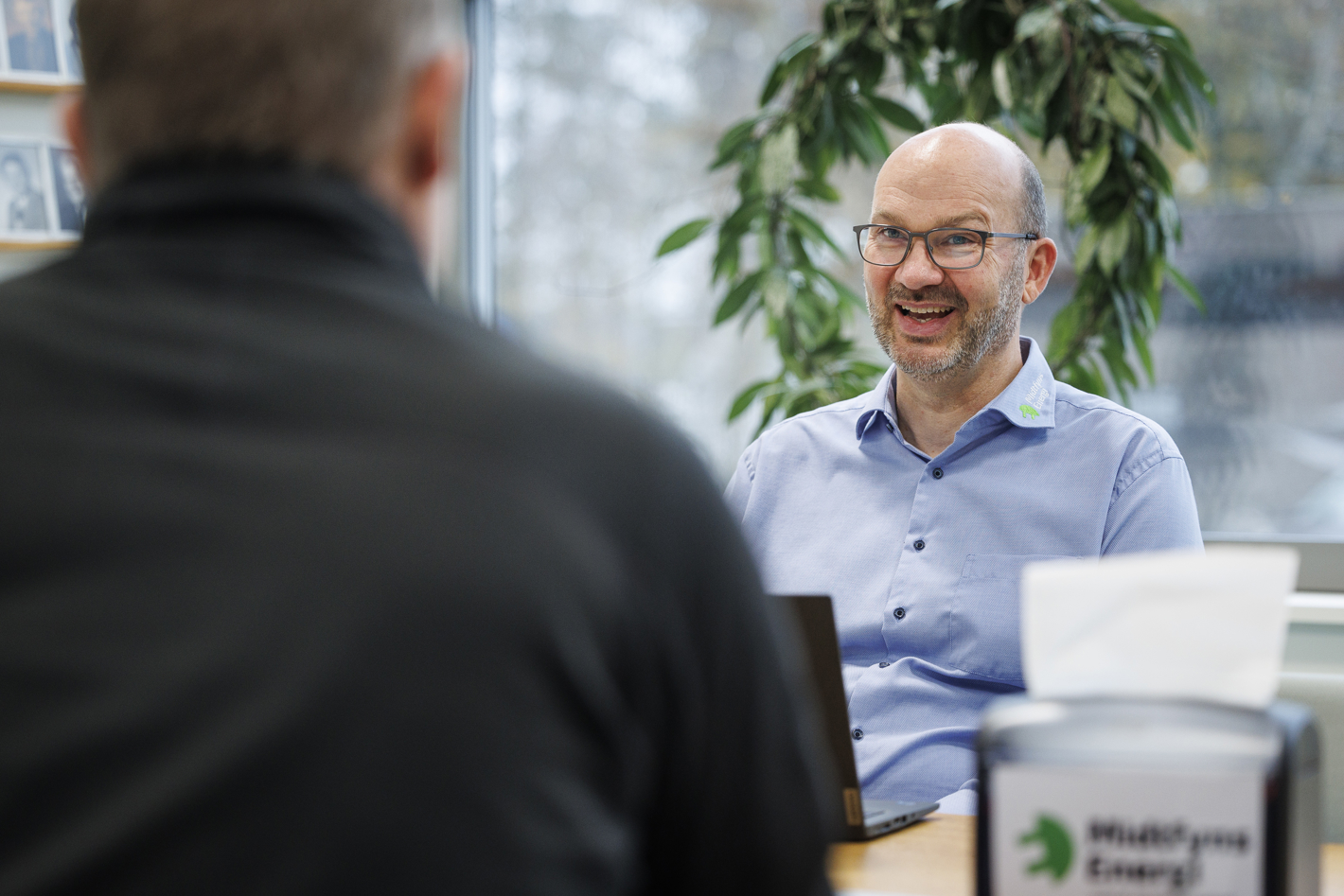 – Det har aflastet os meget, at folk kunne komme til de lokale og stille spørgsmål. Når borgerne fra Ryslinge er kommet til os, har vi godt kunnet mærke, at den indledende snak allerede var taget, forklarer Karsten Godiksen, direktør hos Midtfyns Energi. Foto: Jesper Voldgaard.