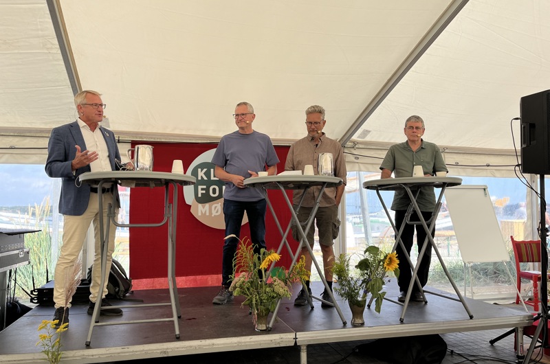 Dansk Fjernvarmes direktør, Kim Mortensen, var moderator på debatten. I teltet stod klima-, energi- og forsyningsordførerne Henrik Frandsen (M), Søren Egge Rasmussen (Ø) og Torsten Gejl (Å) klar til at debattere.