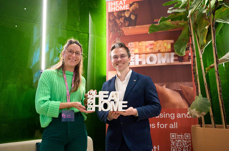 Euroheat & Powers direktør Aurélie Beauvais sammen med det franske EU-parlamentsmedlem Thomas Pellerin-Carlin ved lanceringen af Bring Heat Home-kampagnen. Pellerin-Carlin er blandt de parlamentarikere, der taler varmt om fjernvarme og som bakker kampagnen op. Foto: Tim Buelens / Euroheat & Power