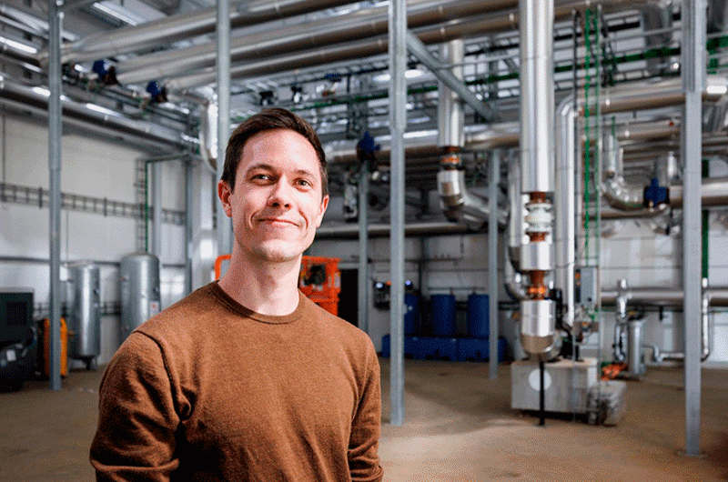 – Varmepumperne erstatter flis som grundlast, så fliskedlen er mere til spidslast og derfor ikke så brugt om sommeren. Det betyder også, at vi mindsker risikoen for, at vi skal bruge vores gaskedler, driftschef Thomas Thomsen. Foto: Jesper Voldgaard.