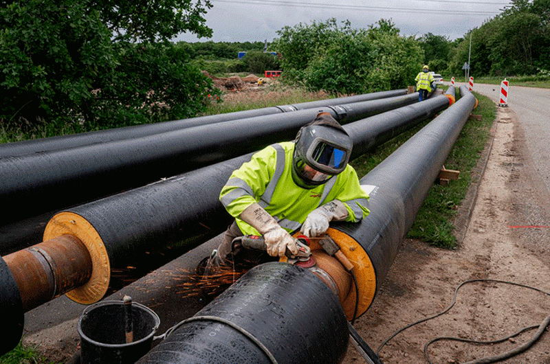 TVIS er ved at lægge fem kilometer fjernvarmerør ned i Kolding og omegn, hvor transmissionsselskabet arbejder sammen med TREFOR Varme på at koble landsbyerne Almind, Viuf, Vester Nebel, Gravens og Ågård til det eksisterende fjernvarmenet. Foto: Maria Tuxen Hedegaard.