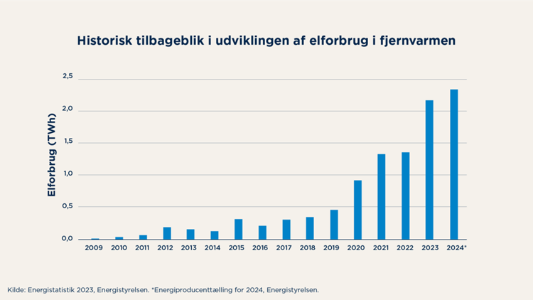 Fjernvarmesektoren har rundet et elforbrug på 2 TWh om året, svarende til samme årlige strømforbrug for over en halv million husstande. Det er en vigtig milepæl i elektrificeringen og den grønne omstilling af varmeproduktionen i Danmark.