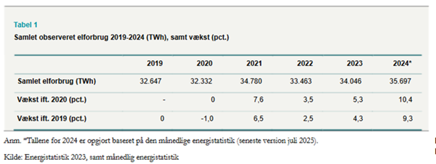 - Siden 2019 er det danske elforbrug steget med 3,05 TWh. Her har fjernvarmesektoren stået for 1,88 TWh, svarende til 61 procent af stigningen.