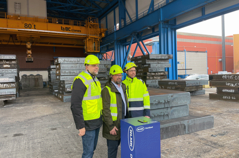 På billedet er det fra venstre: Borgmester, Steffen Jensen, bestyrelsesformand i Halsnæs Forsyning A/S, Thomas Møller Nielsen og Head of Technical & PMO i NLMK DanSteel, Allan T. Thomasen.