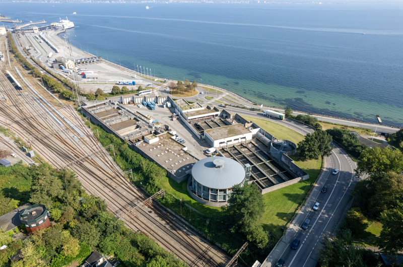 Helsingør Renseanlæg skal i fremtiden huse en varmepumpe med en effekt på 15 MW. Varmepumpen skal baseres på brug af havvand som varmekilde og vil kunne producere ca. 20 procent af varmen i Helsingør Kraftvarmeværks samlede område. Foto: Forsyning Helsingør.