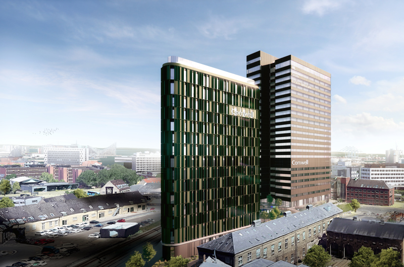 Det drejer sig om et højhus – ”Frederiks Hus” – der skal have kølet dele af den 27.000 etagemeter store bygning, mens CLF Lorenzen K/S udbygger det nuværende ”City Tower” med en 16 etagers tilbygning, hvor Comwell skal køle deres gæster med fjernkøling.