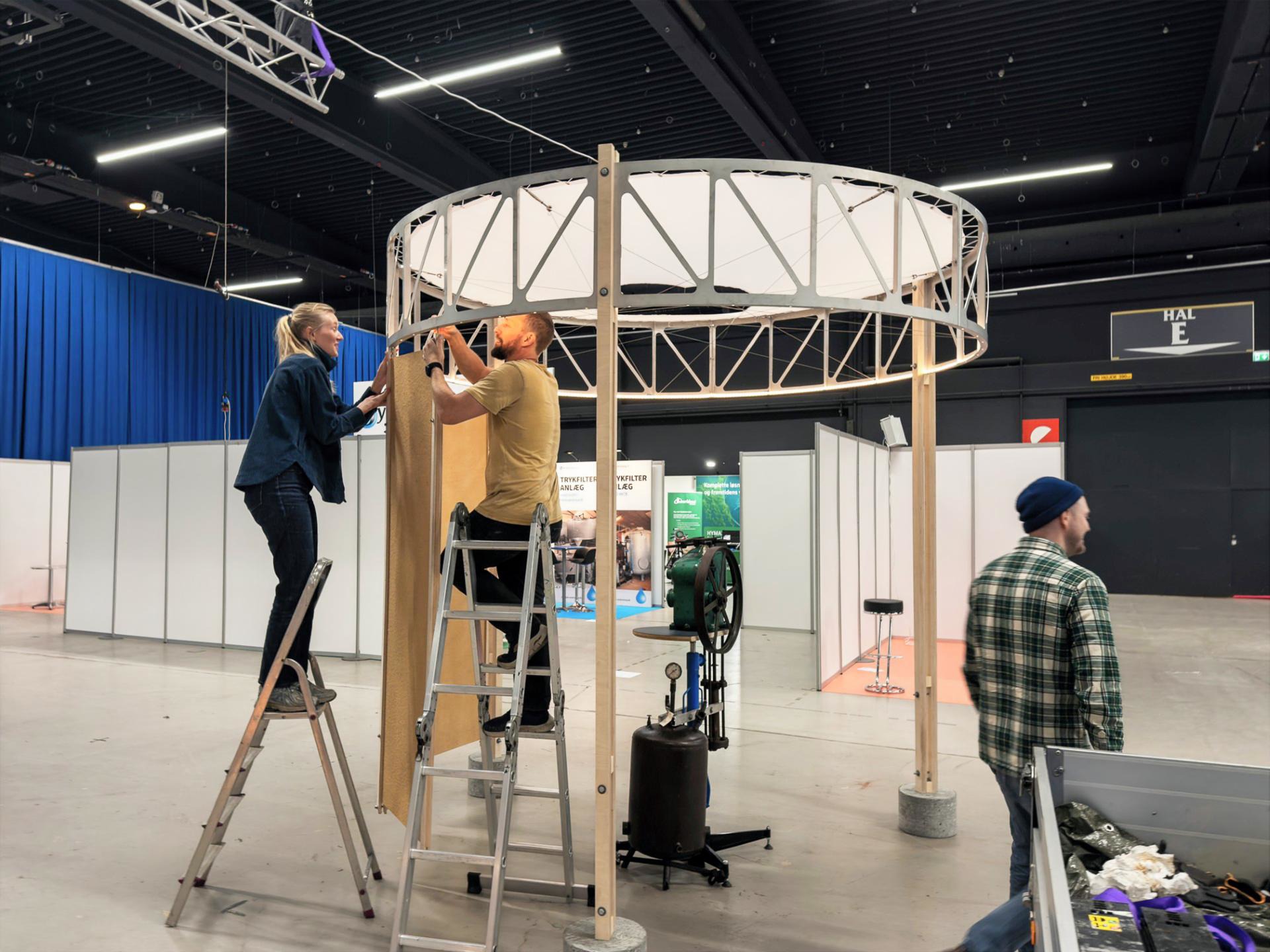 Arkikon genanvender deres stand, og i begyndelsen af oktober opsatte Arkikon den samme stand, som de har med til Dansk Fjernvarmes Landsmøde nu på torsdag, til Danske Vandværkers Fagmesse i Fredericia. Foto: Arkikon.