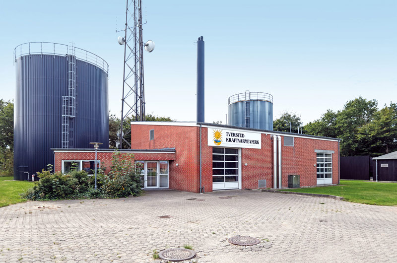 I dag produceres varmen i Tversted på biomasse og solenergi. Lykkes det at få energiparken stablet på benene, vil størstedelen i fremtiden komme fra en varmepumpe. Foto: Tversted Kraftvarmeværk.