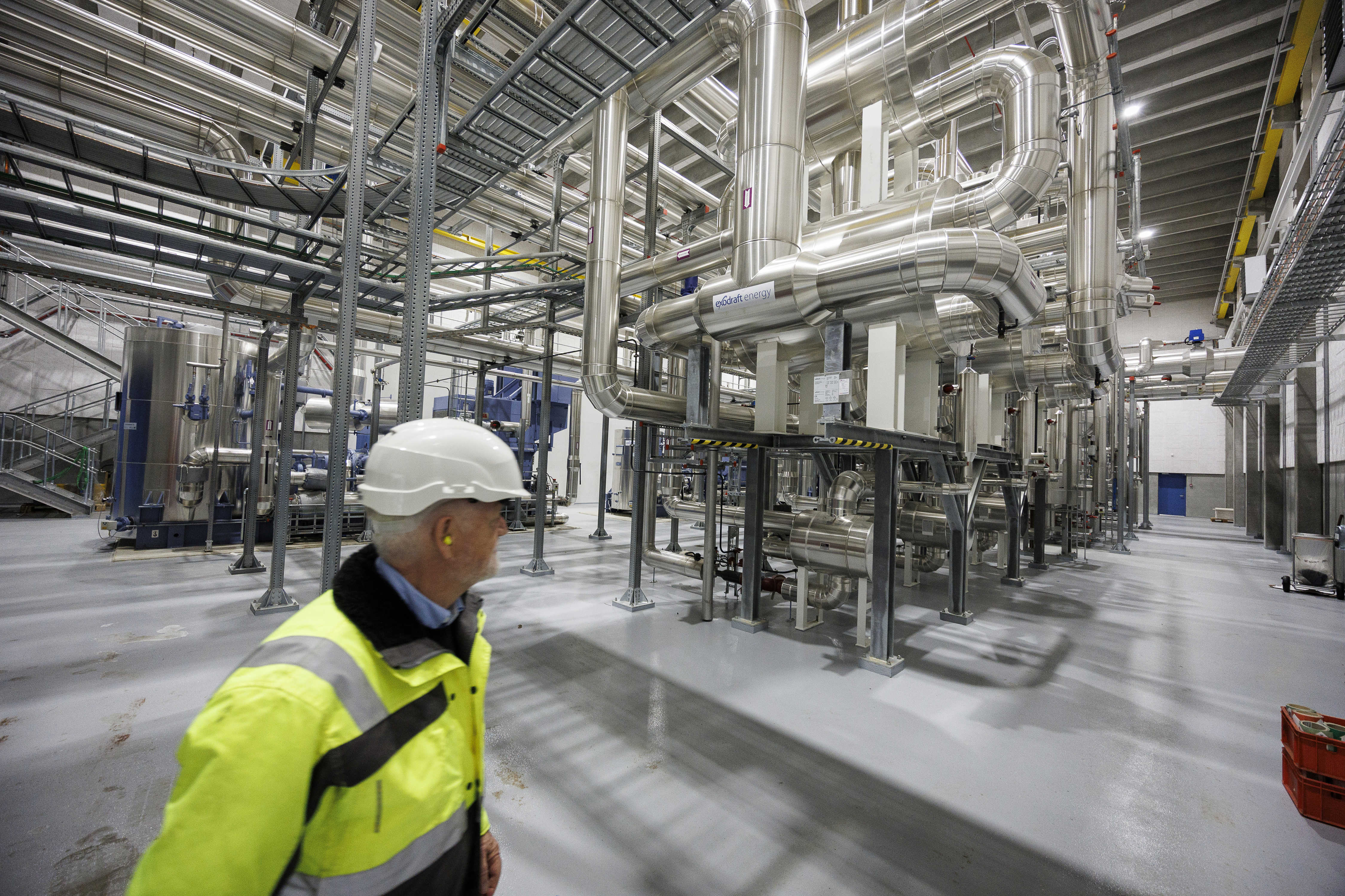 Dernæst gik turen videre til varmepumpeanlægget, inden Jens Bastrup overlevede to klare budskaber til Dina Raabjerg.