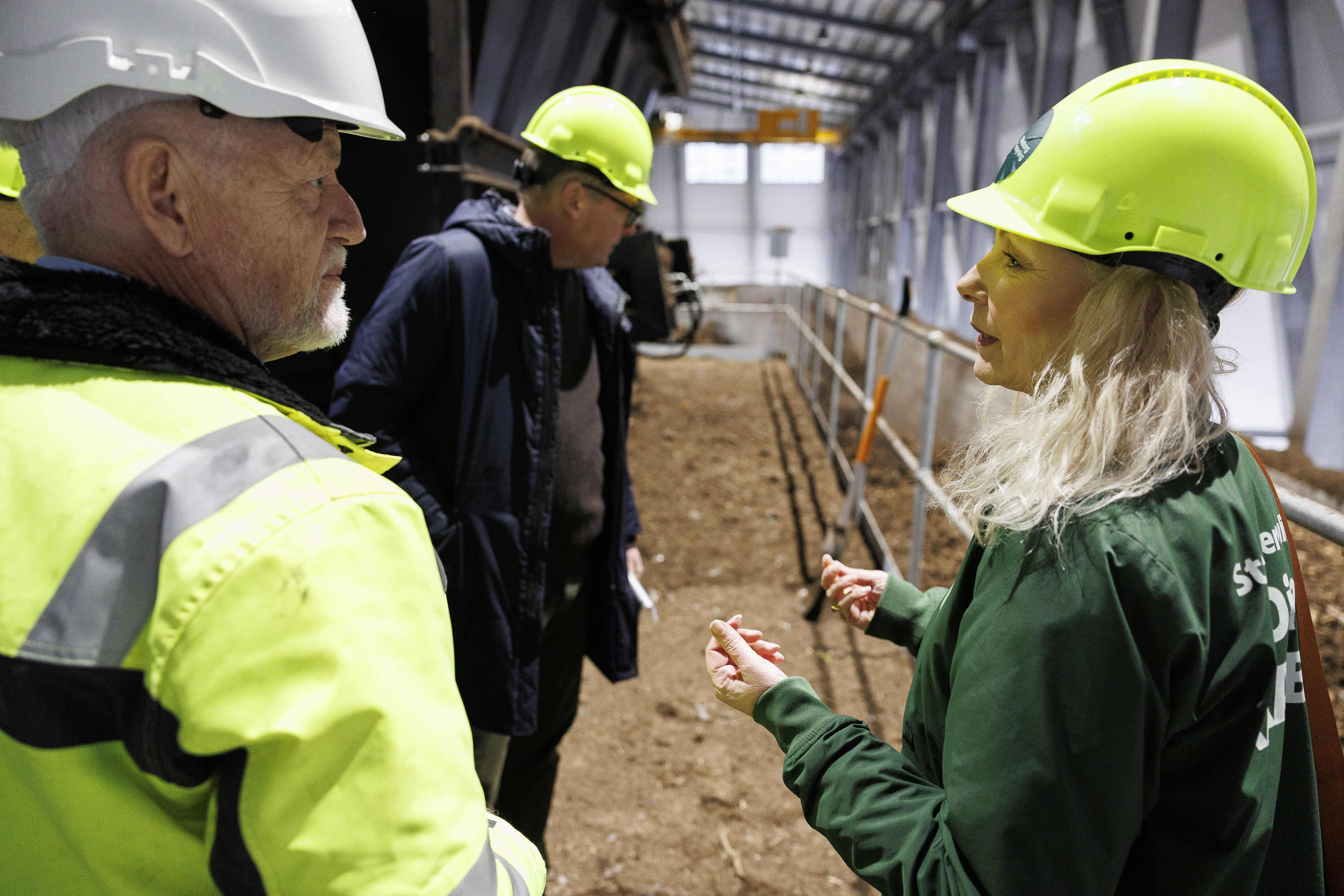 Rundvisningen begyndte med at Dina Raabjerg og Jan Lundum Danielsen skulle se både kontrolrum og anlæg til biomassekedlen, som brænder have- og parkbrændsel. Der er få anlæg i Danmark, der kører på have-park affald.