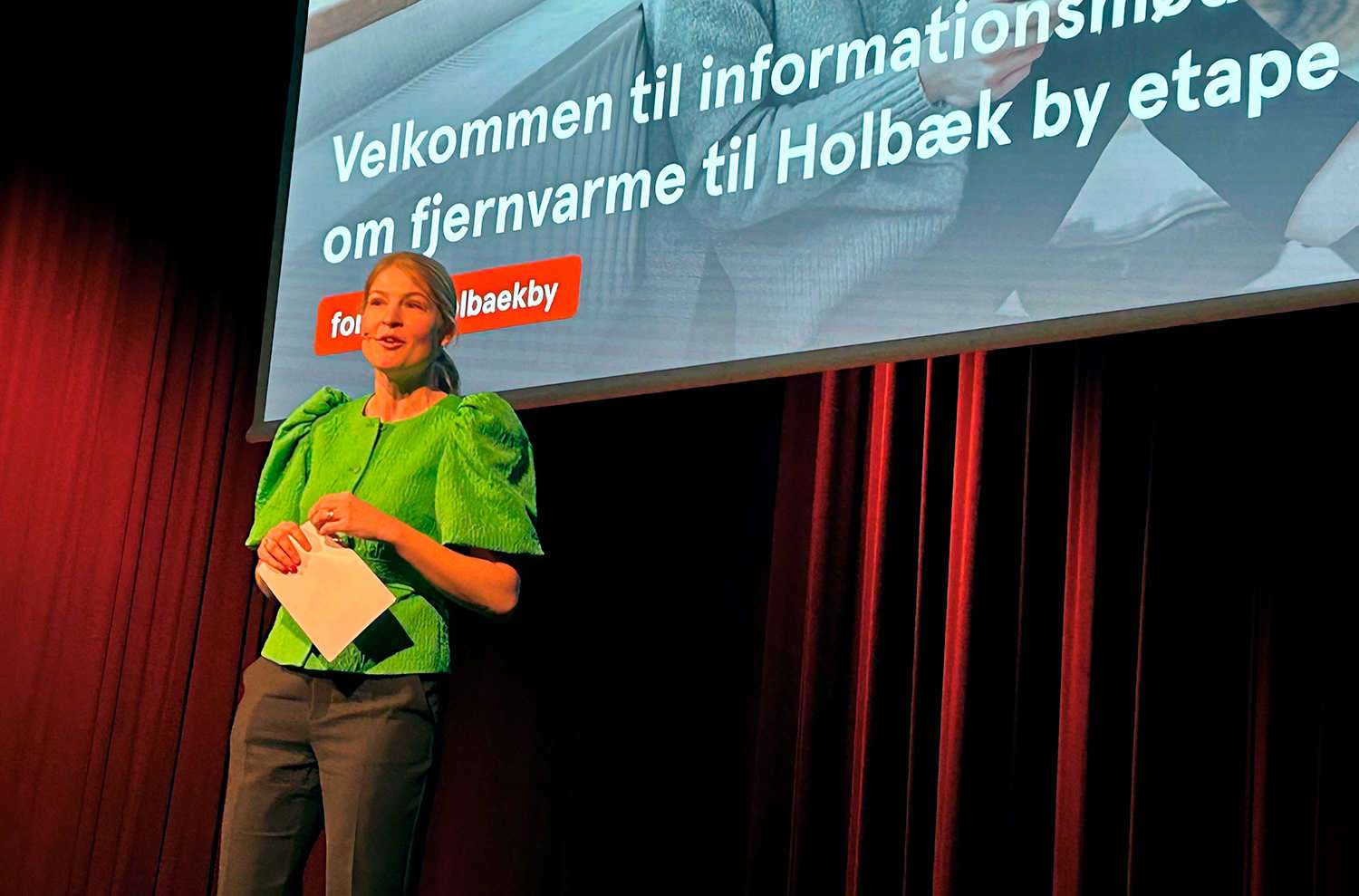Aftenen begyndte med borgmester Christina Krzyrosiak, der spurgte forsamlingen, om de kunne huske 2022. For det kunne hun. Telefonerne på rådhuset var rødglødende med desperate borgere, der ikke forstod, hvorfor Holbæk ikke havde fjernvarme, så de kunne skifte væk fra gassen.